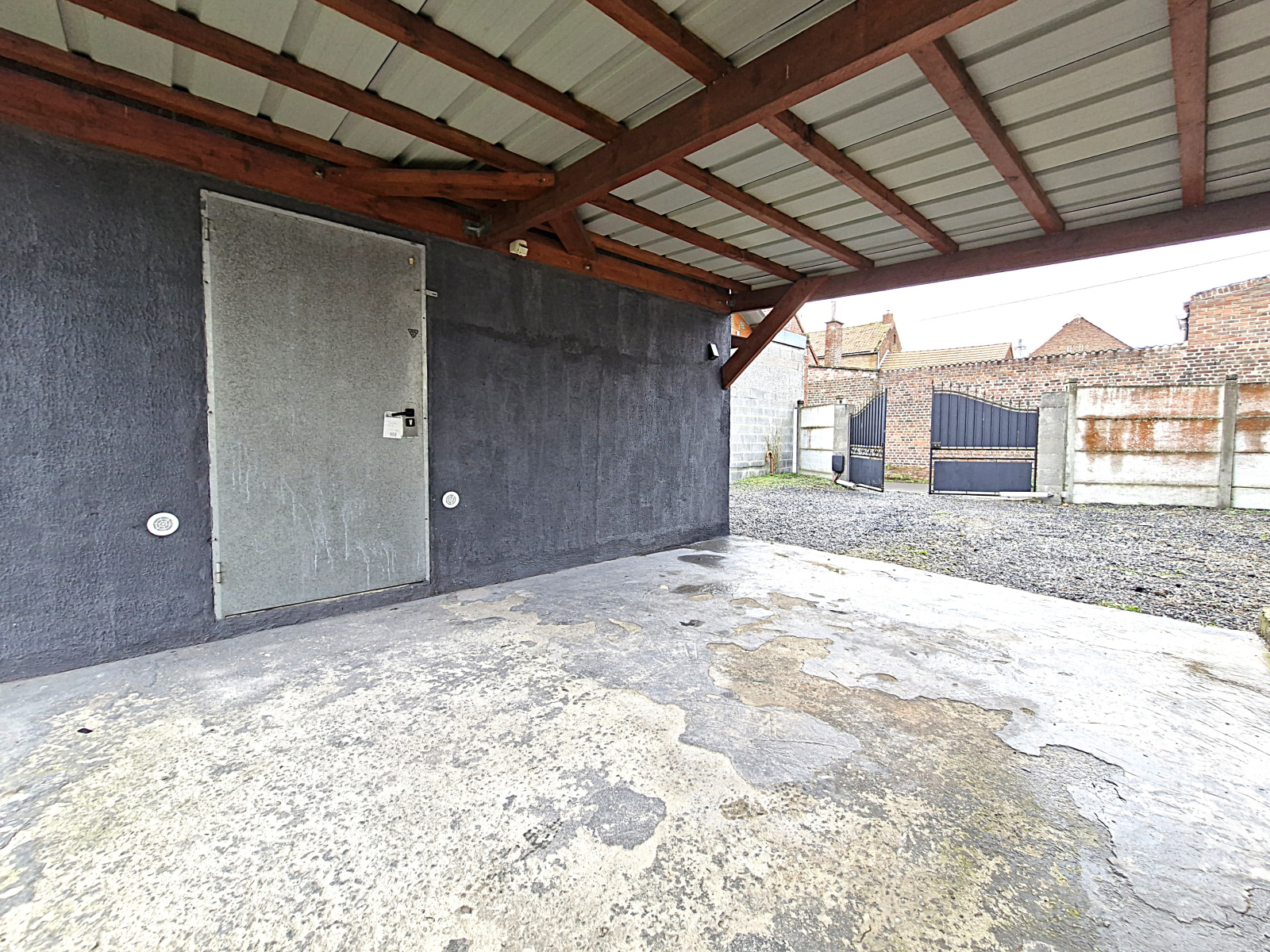 Jardin, terrasse, cour avec portail.