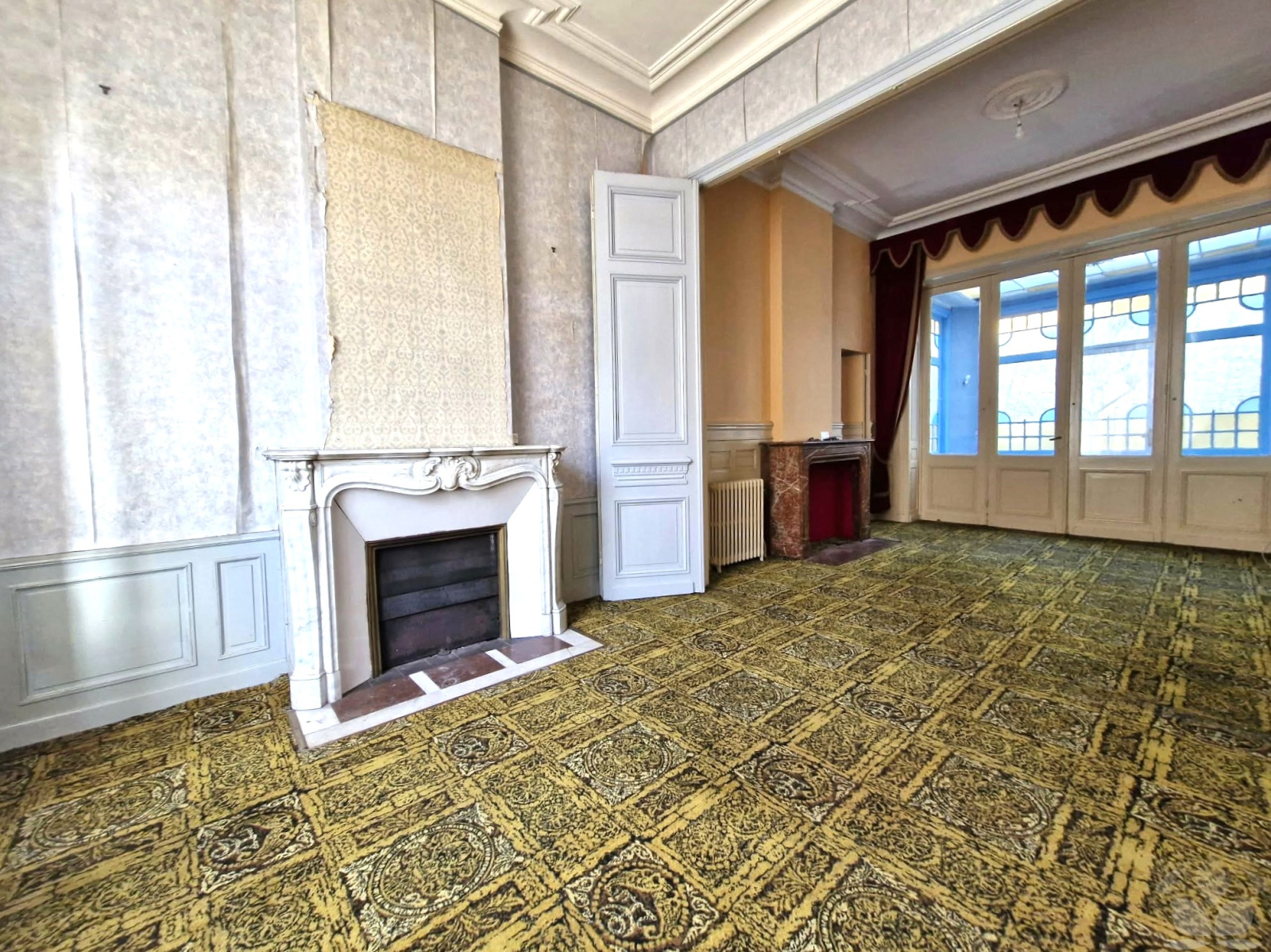 Maison bourgeoise mitoyenne d’environ 238 m² habitables, bâtie sur 227 m² de terrain, offrant :